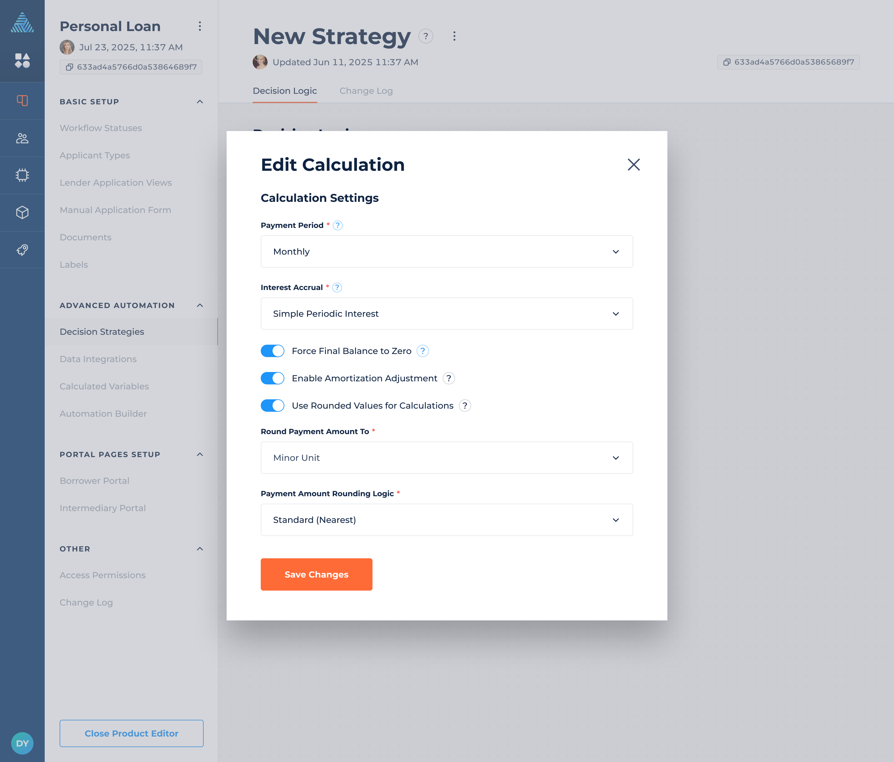 We have improved the Amortization Table module in Decision Strategies by adding new rounding options within Calculation Settings. In addition, this release includes several minor bug fixes and UI improvements.
