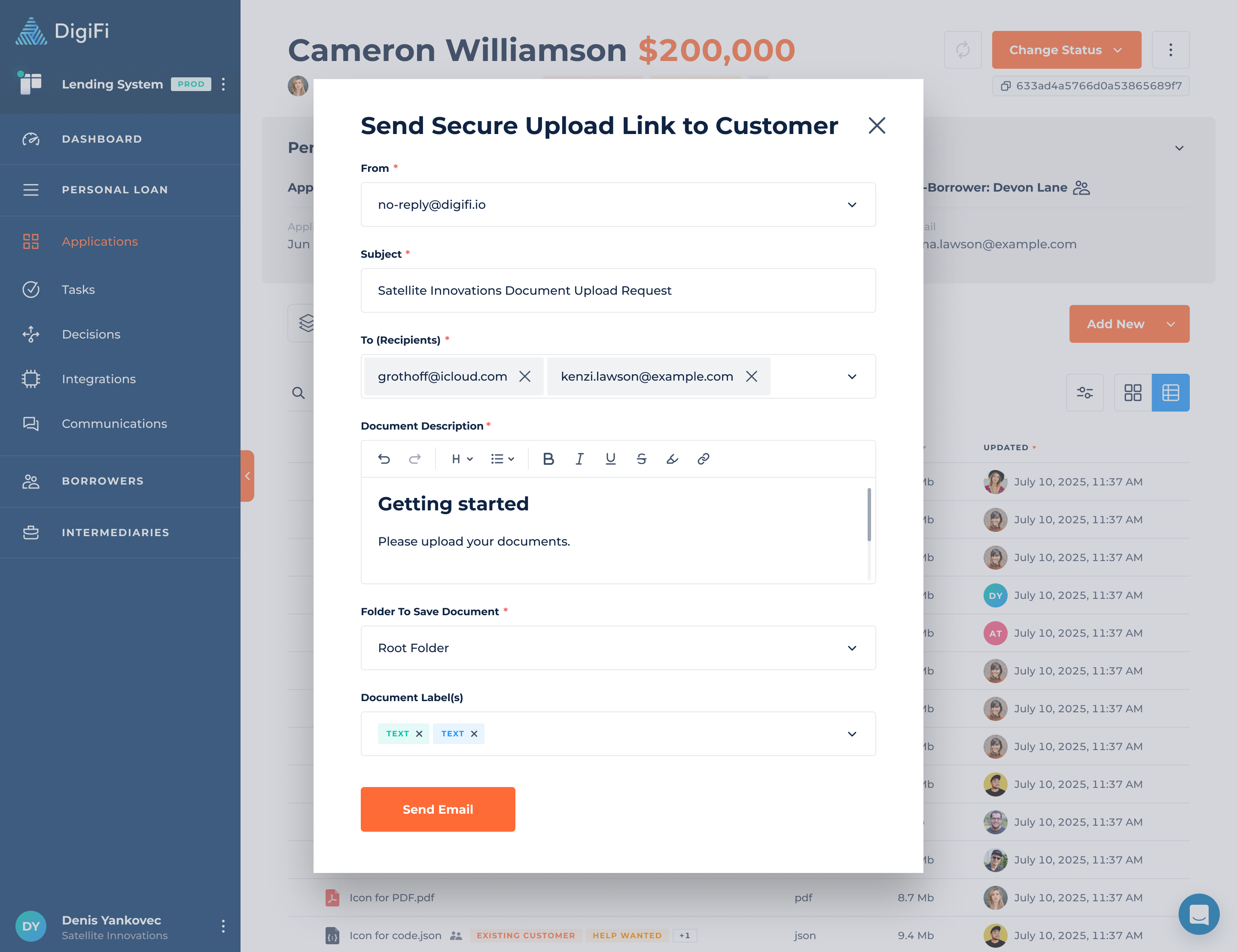 The “Request Document Upload” action in Automation Builder has been enhanced to support selecting from multiple sender email addresses (if available) and sending requests to multiple recipients.