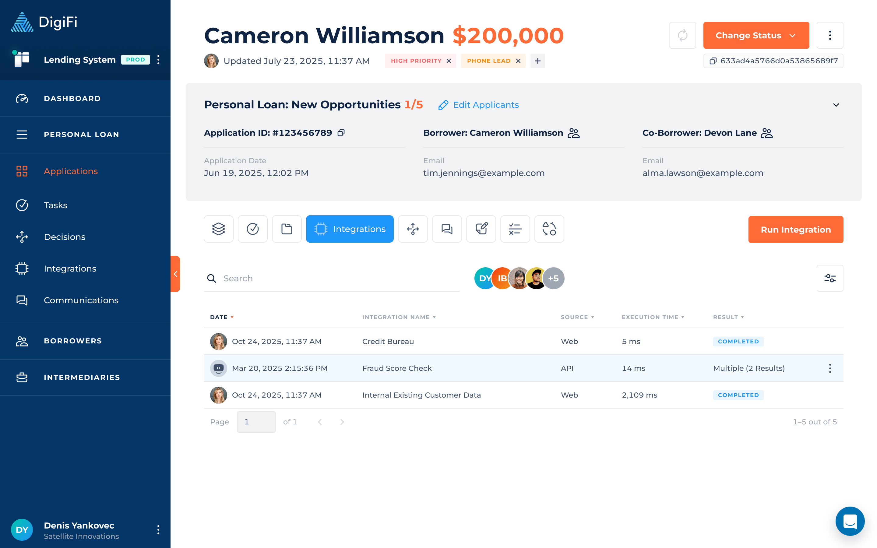 DigiFi's platform includes the ability to run integrations, which automatically retrieve data from third-party systems such as credit bureaus, verification providers, CRMs or your own internal systems.