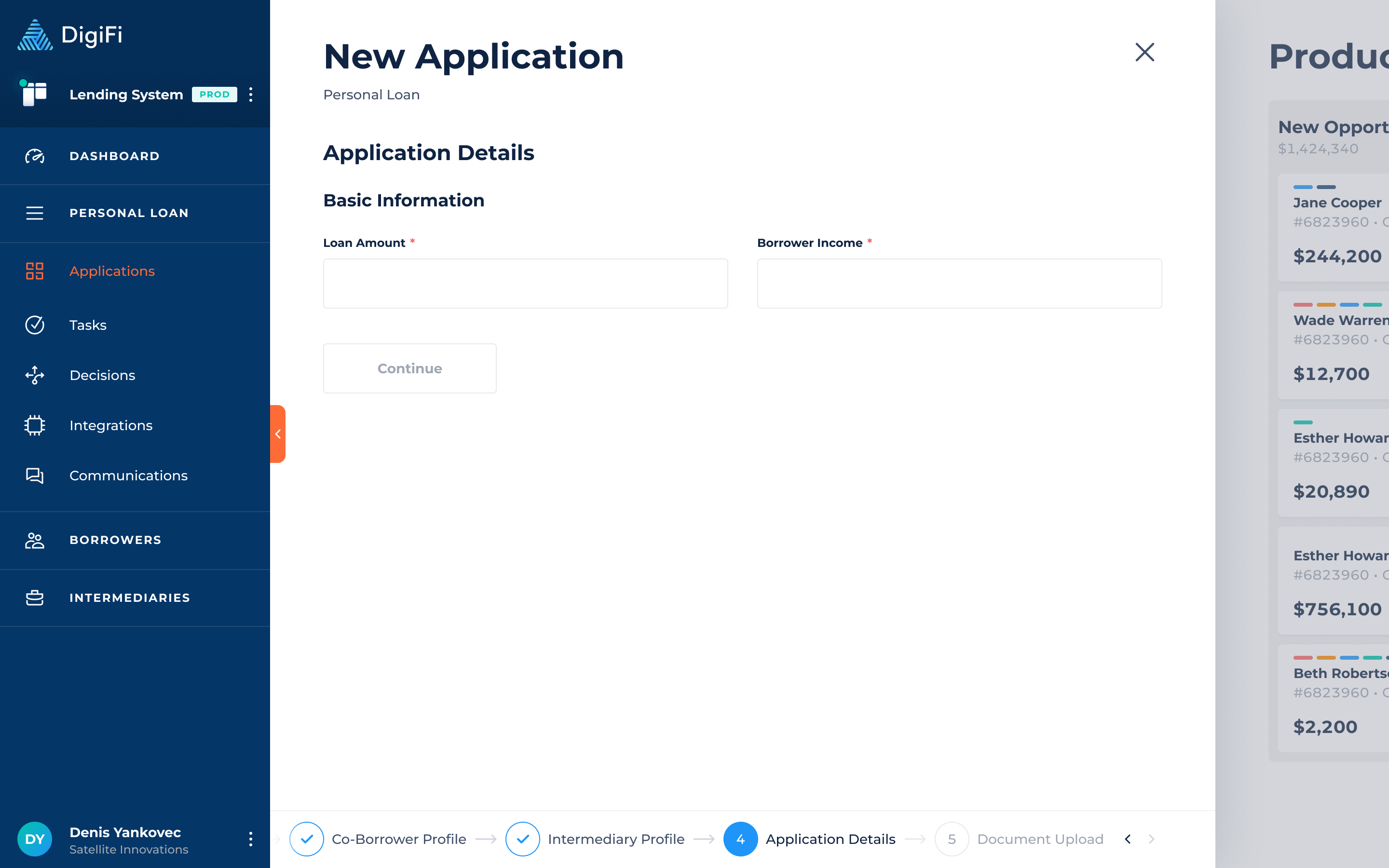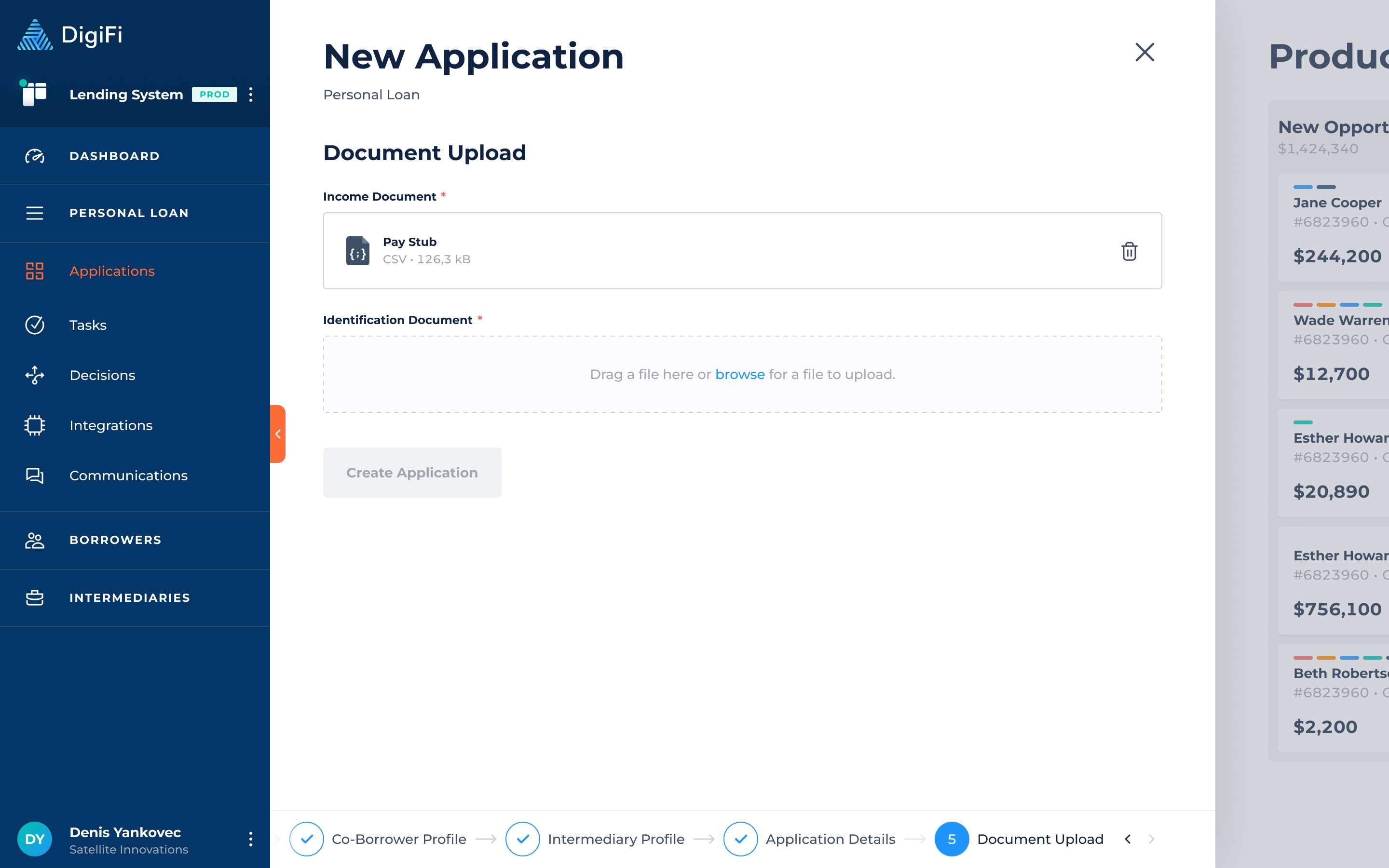 Creating applications through DigiFi's user interface requires completing the application form that was set up for your loan product.