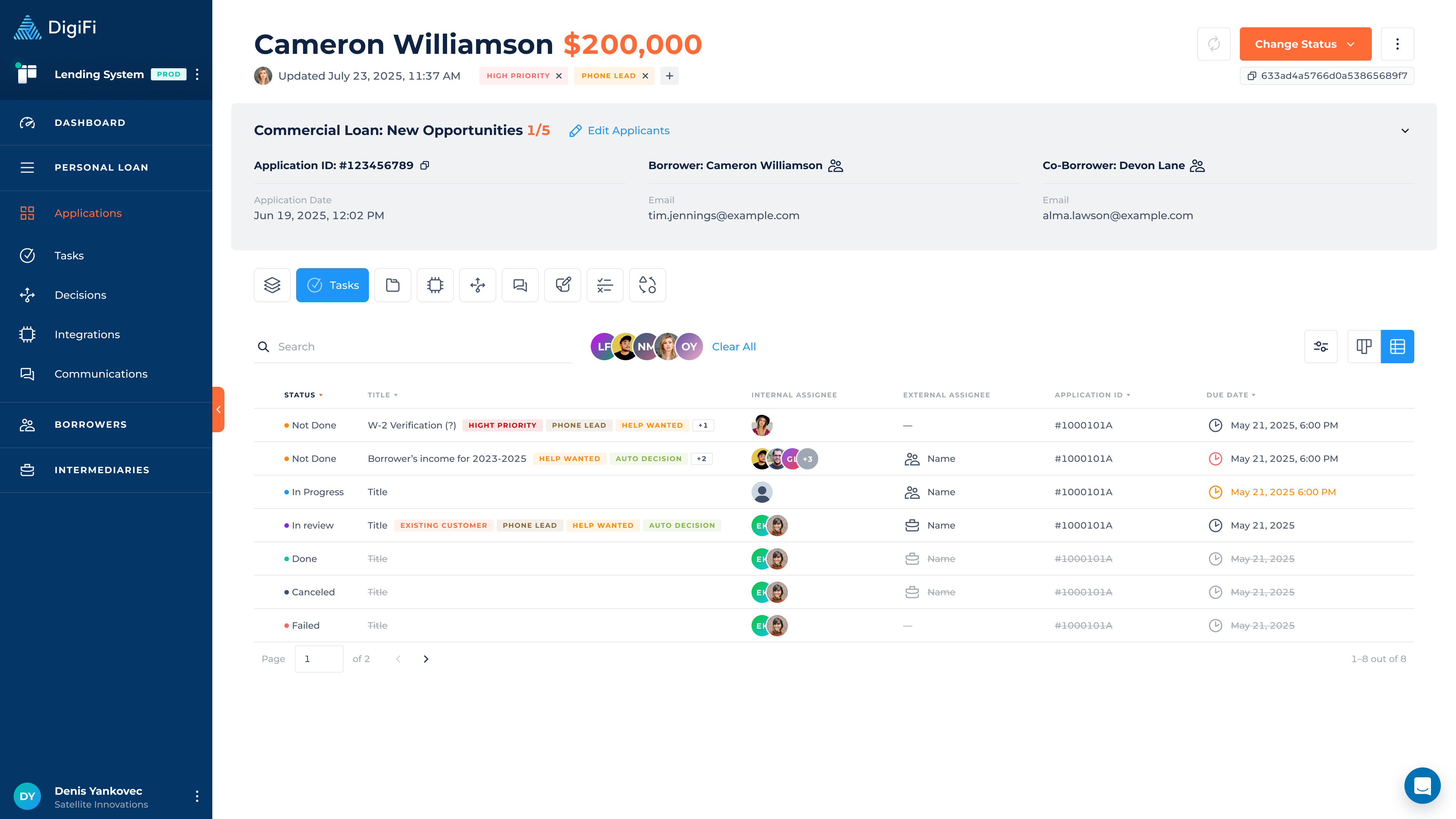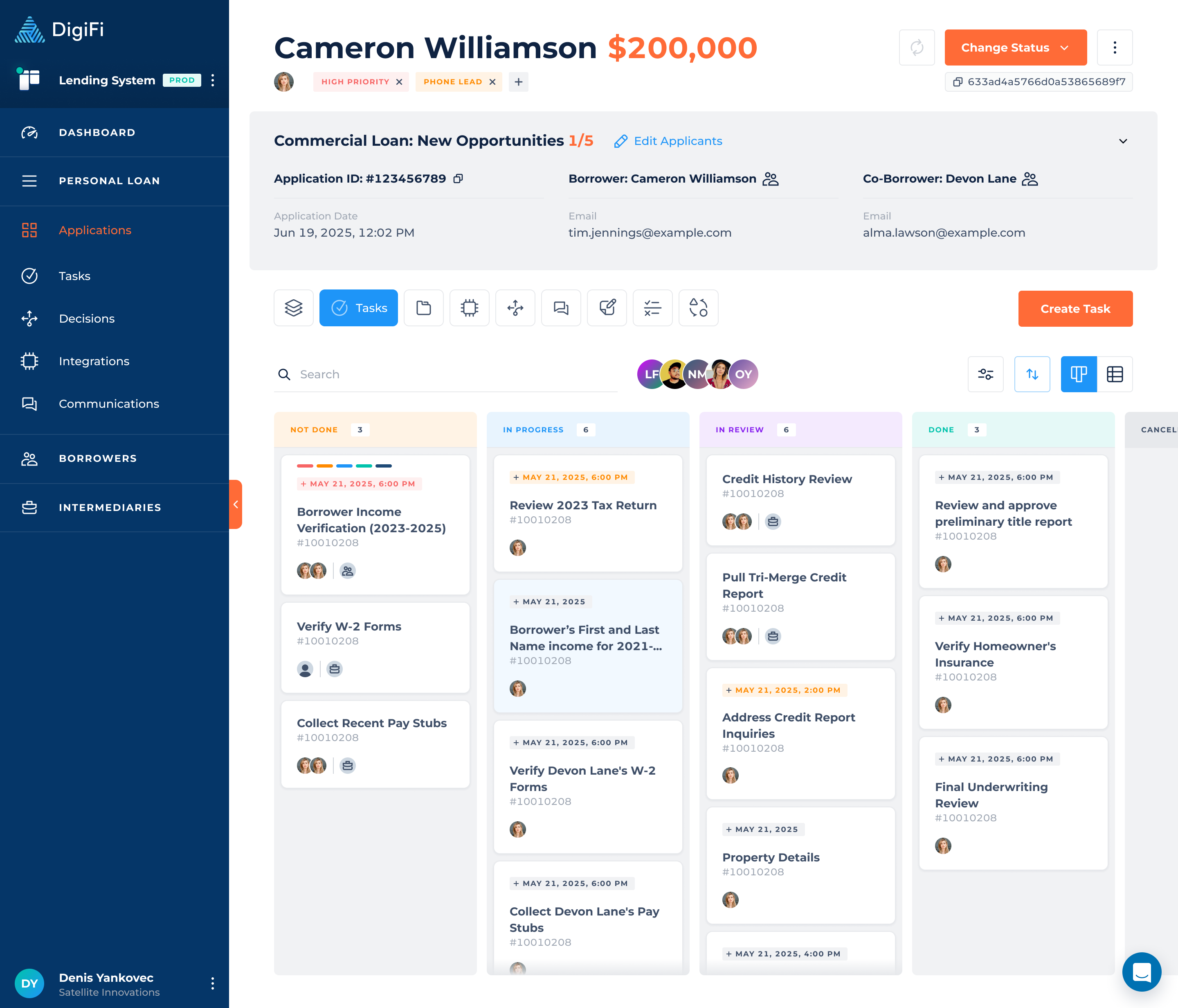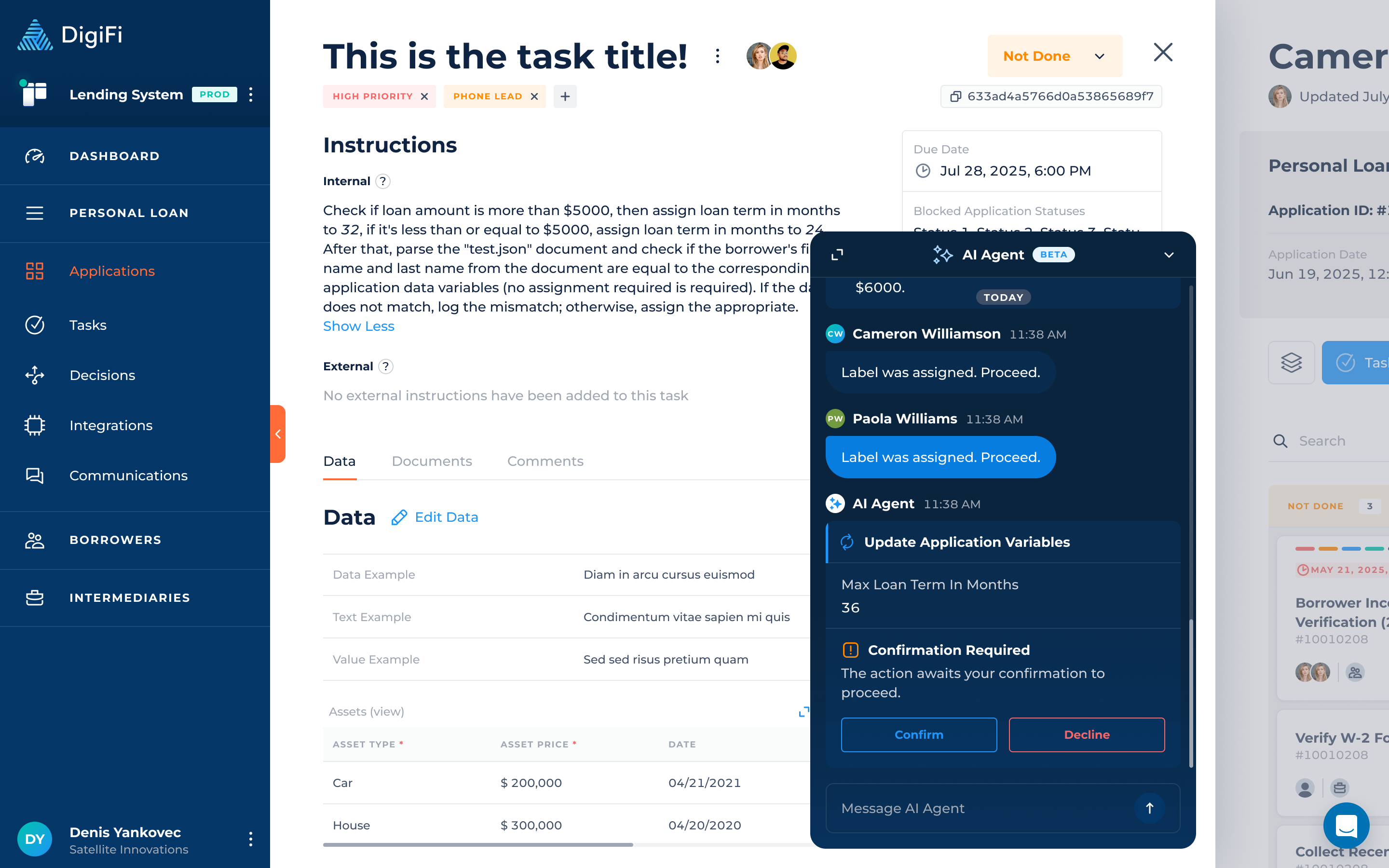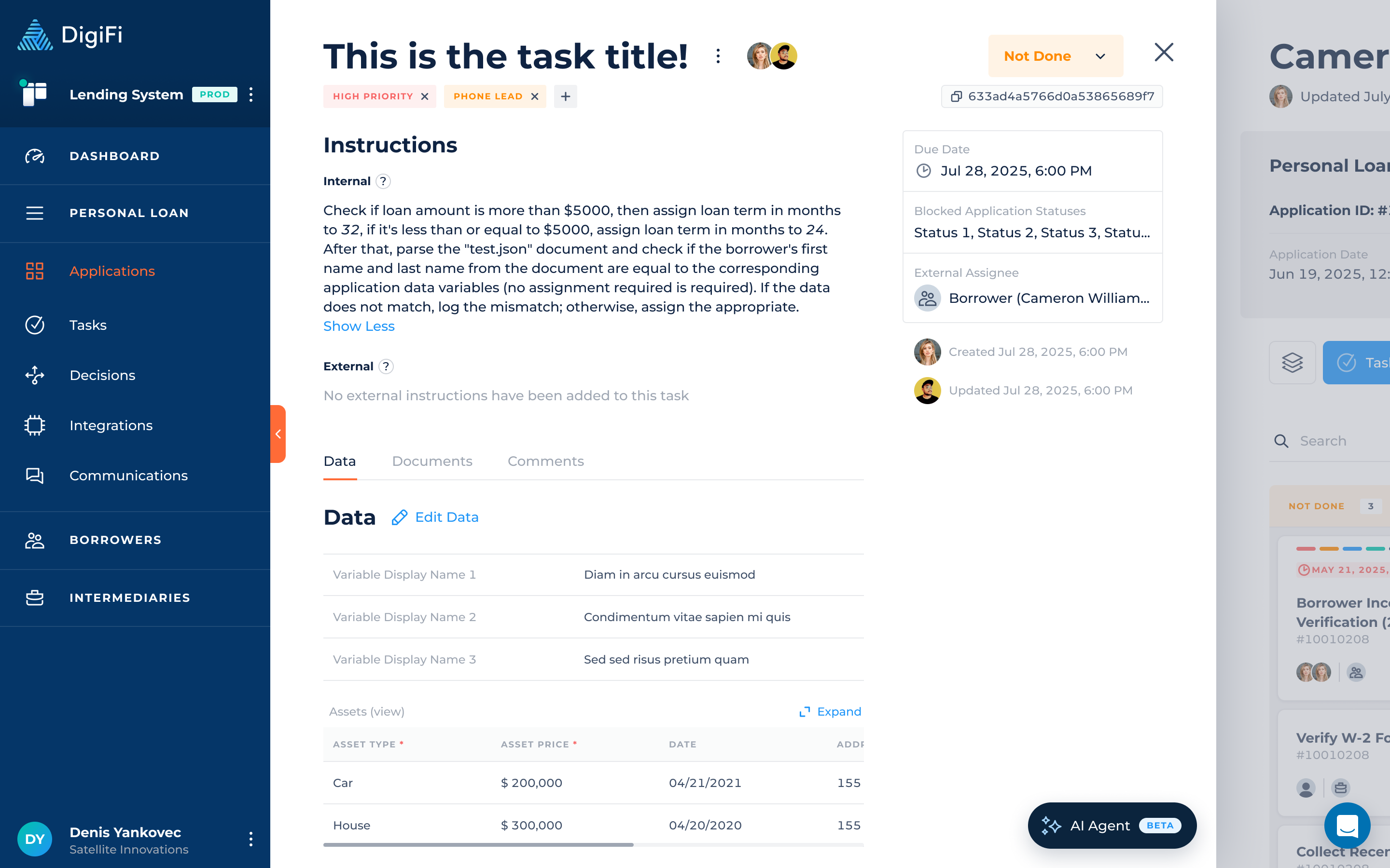 If you have a custom digital lending portal, we recommend creating a page for their tasks and using the DigiFi API to fetch and return task-related information.