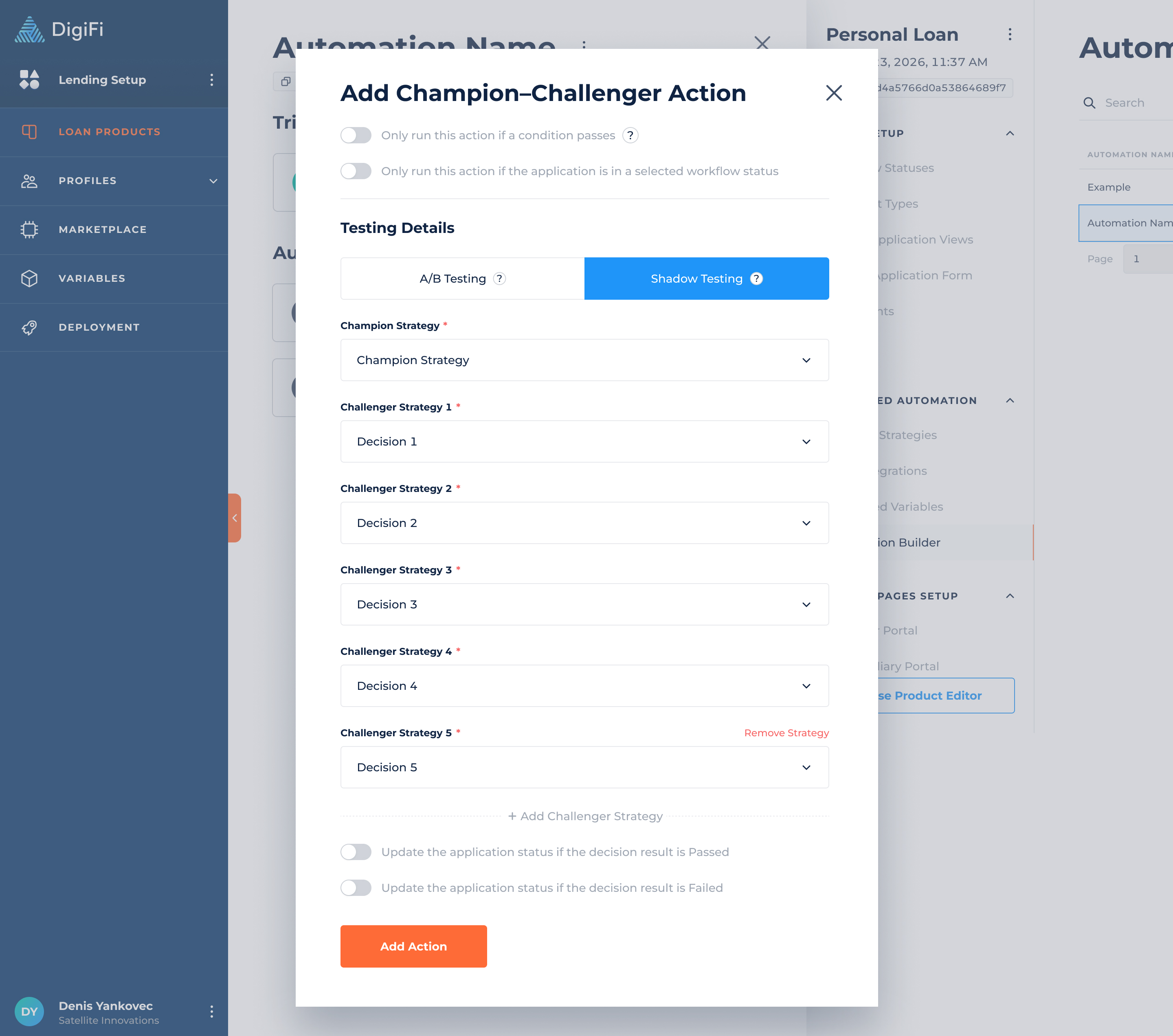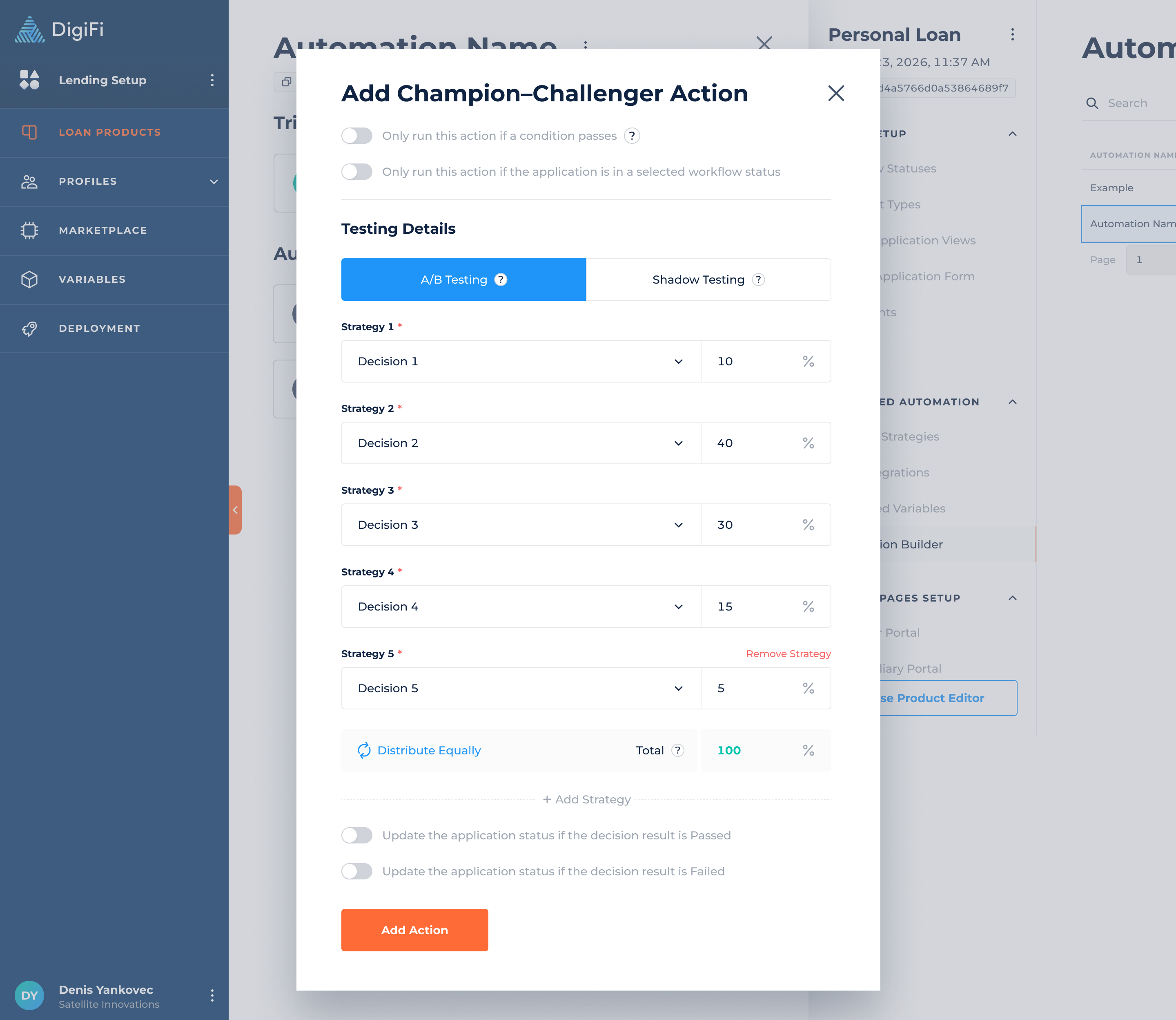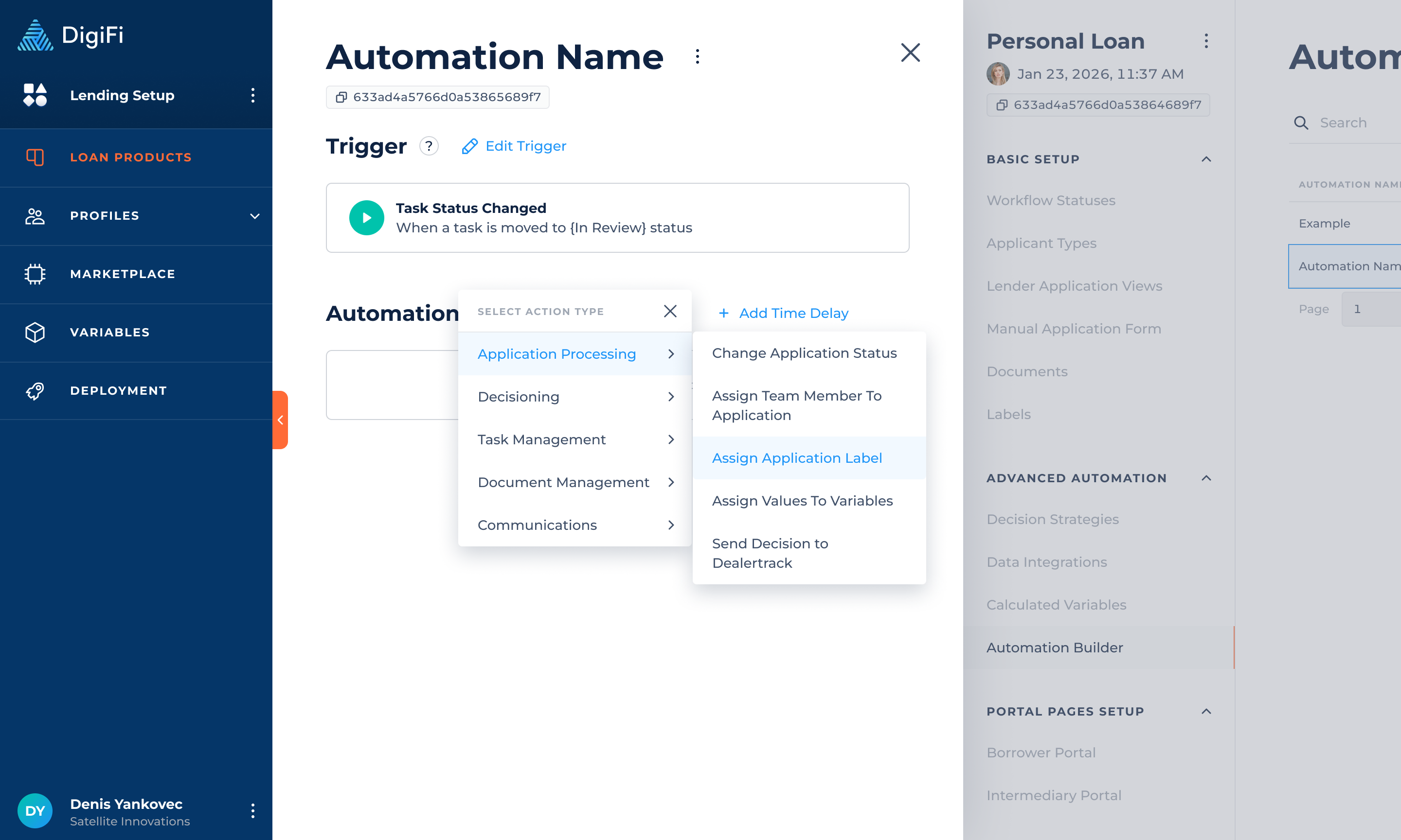 - Navigate to the "Automation Builder" section of your Loan Product.