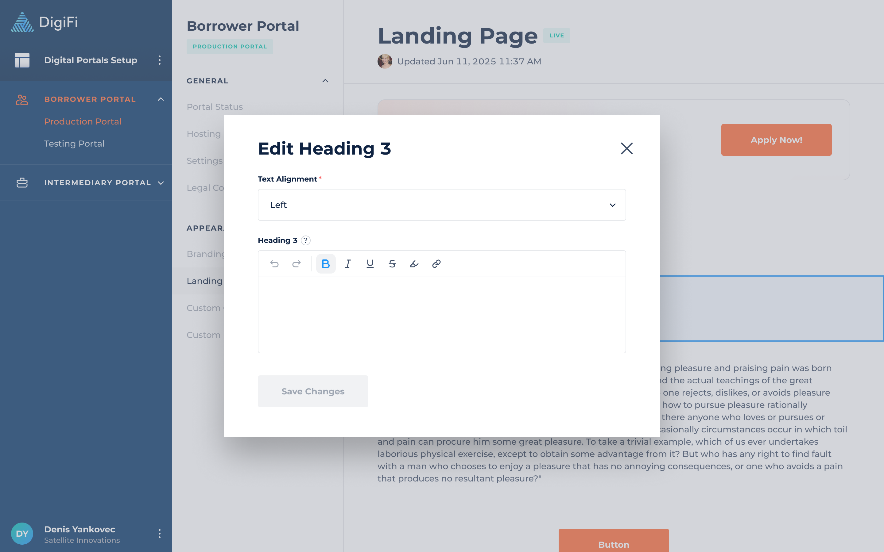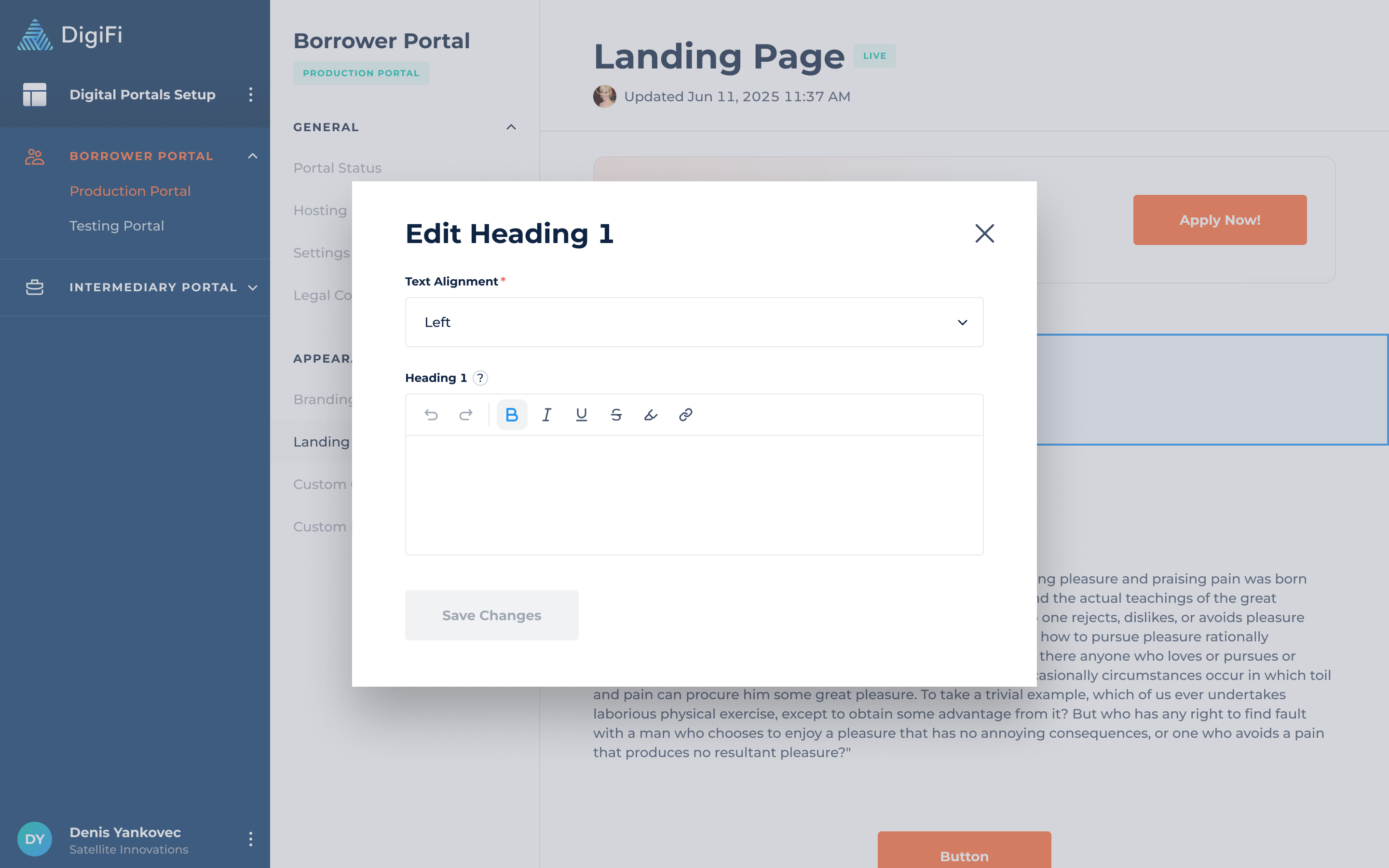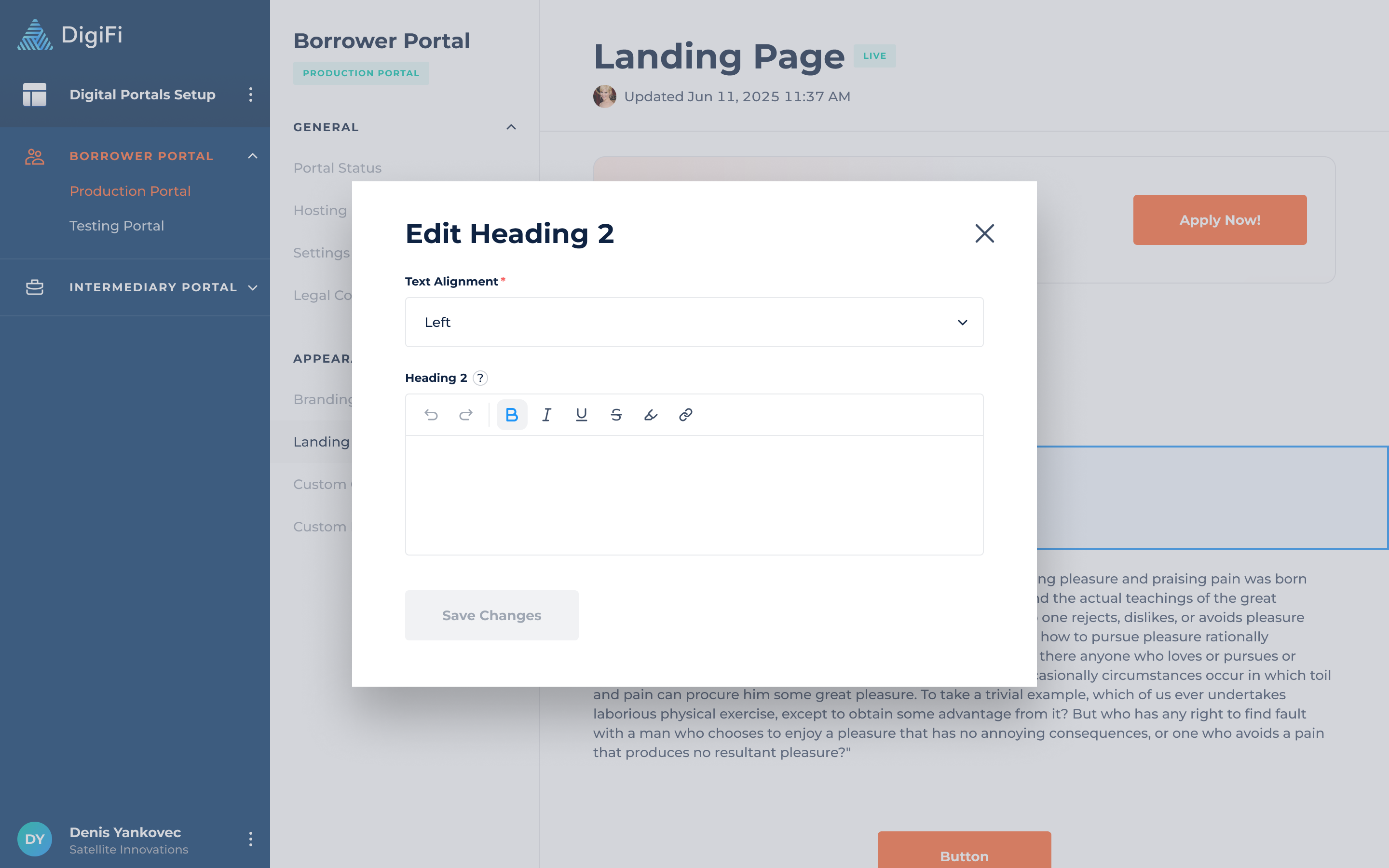 DigiFi provides the ability to customize and build the landing page using page elements, similar to those used for other portal pages.