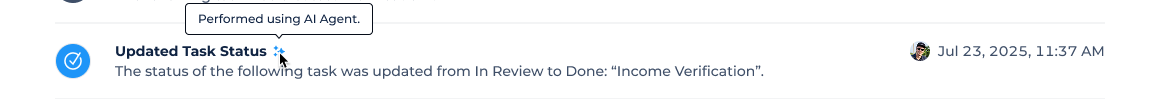 Once you enable this integration, the AI Agent will become available in your application tasks, allowing you to update and complete them more efficiently. It can perform automatic actions such as reading and verifying documents, updating data, and more.