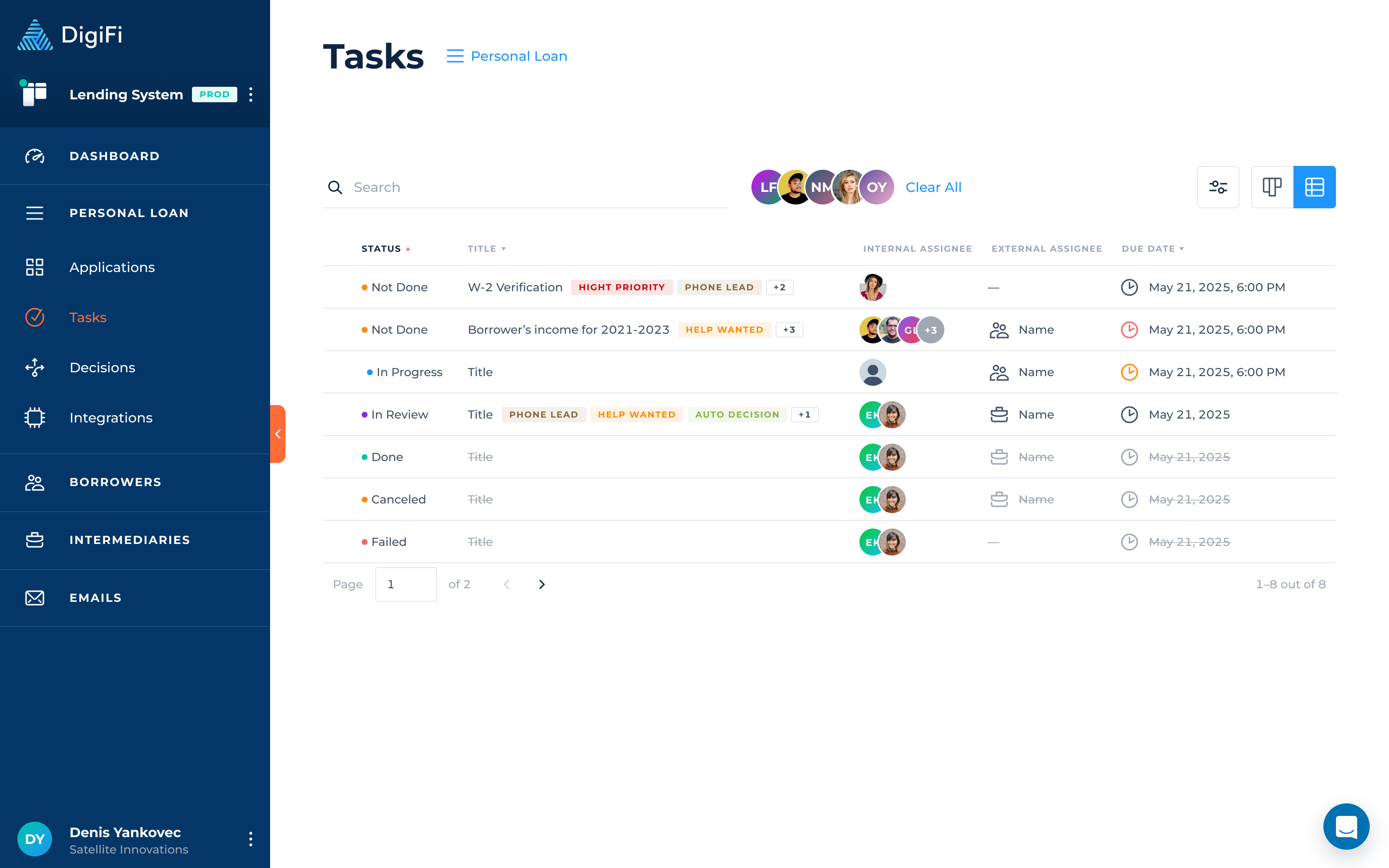 The "Tasks" section includes all tasks within a specific loan product across all applications and is intended to streamline your work by making it easy to quickly find all of the tasks that are assigned to you.